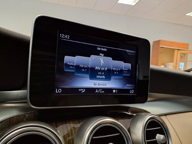 Equipped with C 300, 4D Sedan, 2.0L I4 Turbocharged, 9-Speed Automatic, RWD, Black, Silk Beige/Black Leatherette, Premium audio system: COMAND®, 4-way Power Driver's Lumbar Support, 4-Wheel Disc Brakes, 5 Speakers, ABS brakes, Air Conditioning, Alloy wheels, AM/FM radio, Anti-whiplash front head restraints, Auto tilt-away steering wheel, Auto-dimming door mirrors, Auto-dimming Rear-View mirror, Automatic temperature control, Bodyside moldings, Brake assist, Bumpers: body-color, CD player, Child-Seat-Sensing Airbag, Compass, Delay-off headlights, Driver door bin, Driver vanity mirror, Dual front impact airbags, Dual front side impact airbags, Electronic Stability Control, Emergency communication system: mbrace2, Exterior Parking Camera Rear, Four wheel independent suspension, Front anti-roll bar, Front Bucket Seats, Front Center Armrest, Front dual zone A/C, Front reading lights, Fully automatic headlights, Garage door transmitter: Homelink, Genuine wood console insert, Genuine wood dashboard insert, Genuine wood door panel insert, Head restraints memory, Heated door mirrors, Illuminated entry, Knee airbag, Low tire pressure warning, MB-Tex Upholstery, Memory seat, Occupant sensing airbag, Outside temperature display, Overhead airbag, Overhead console, Panic alarm, Passenger door bin, Passenger vanity mirror, Power door mirrors, Power driver seat, Power Front Seats w/Driver Memory, Power moonroof, Power passenger seat, Power steering, Power windows, Radio data system, Radio: Audio 20, Rain sensing wipers, Rear anti-roll bar, Rear fog lights, Rear reading lights, Rear seat center armrest, Rear side impact airbag, Rear window defroster, Remote keyless entry, Security system, Single CD Player, Speed control, Speed-sensing steering, Split folding rear seat, Steering wheel memory, Steering wheel mounted audio controls, Tachometer, Telescoping steering wheel, Tilt steering wheel, Traction control, Trip computer, Turn signal indicator mirrors, Variably intermittent wipers, Weather band radio, and Wheels: 17 Split Y-Spoke.