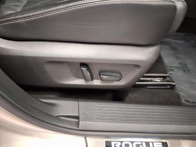 Equipped with Rogue Platinum, 4D Sport Utility, 2.5L I4 DOHC 16V, CVT with Xtronic, AWD, Champagne Silver Metallic/Super Black, Charcoal Leather, 10 Speakers, 19 Aluminum Alloy Wheels, 4-Wheel Disc Brakes, 5.604 Axle Ratio, ABS brakes, Air Conditioning, Alloy wheels, AM/FM radio, Auto High-beam Headlights, Auto-dimming Rear-View mirror, Automatic temperature control, Black Splash Guards (Set of 4), Bose Premium Audio System, Brake assist, Bumpers: body-color, Chrome Rear Bumper Protector, Delay-off headlights, Driver door bin, Driver vanity mirror, Dual front impact airbags, Dual front side impact airbags, Electronic Stability Control, Emergency communication system: NissanConnect Services, Exterior Parking Camera Rear, First Aid Kit, Floor Mats w/2-Piece Cargo Area Protector, Four wheel independent suspension, Front anti-roll bar, Front Bucket Seats, Front Center Armrest, Front dual zone A/C, Front fog lights, Front reading lights, Fully automatic headlights, Heads-Up Display, Heated door mirrors, Heated Front Bucket Seats, Heated front seats, Heated rear seats, Heated steering wheel, Illuminated entry, Illuminated Kick Plates, Knee airbag, Leather steering wheel, Low tire pressure warning, Memory seat, Navigation system: NissanConnect Navigation, NissanConnect featuring Apple CarPlay and Android Auto, Occupant sensing airbag, Outside temperature display, Overhead airbag, Overhead console, Panic alarm, Passenger door bin, Passenger vanity mirror, Power door mirrors, Power driver seat, Power Liftgate, Power moonroof, Power passenger seat, Power steering, Power windows, Quilted Semi-Aniline Leather Seat Trim, Radio data system, Radio: AM/FM NissanConnect w/Navigation, Rear air conditioning, Rear anti-roll bar, Rear seat center armrest, Rear side impact airbag, Rear window defroster, Rear window wiper, Remote keyless entry, Roof rack: rails only, Security system, Speed control, Speed-Sensitive Wipers, Split folding rear seat, Spoiler, Steering wheel mounted audio controls, Tachometer, Telescoping steering wheel, Tilt steering wheel, Traction control, Trip computer, Turn signal indicator mirrors, and Variably intermittent wipers.