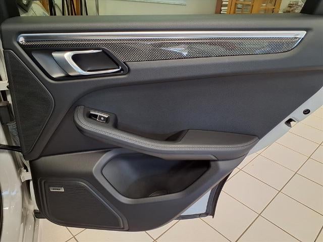 Equipped with Leather Package Seat Trim, HVAC memory, 14 Speakers, 18-Way Adaptive Sport Seats, 4-Wheel Disc Brakes, ABS brakes, Adaptive suspension, Air Conditioning, Alloy wheels, AM/FM radio: SiriusXM, Apple CarPlay, Auto tilt-away steering wheel, Automatic temperature control, Axle Ratio: 4.13, Brake assist, Bumpers: body-color, Delay-off headlights, Driver door bin, Driver vanity mirror, Dual front impact airbags, Dual front side impact airbags, Electronic Stability Control, Emergency communication system: Car Connect Services, Exterior Parking Camera Rear, Four wheel independent suspension, Front anti-roll bar, Front Bucket Seats, Front Center Armrest, Front dual zone A/C, Front fog lights, Front reading lights, Fully automatic headlights, Garage door transmitter: HomeLink, Heated door mirrors, Heated front seats, Heated steering wheel, Illuminated entry, Leather Shift Knob, Low tire pressure warning, Memory Pkg, Memory seat, Navigation System, Occupant sensing airbag, Outside temperature display, Overhead airbag, Overhead console, Panic alarm, Passenger door bin, Passenger vanity mirror, Porsche Communication Management, Power door mirrors, Power driver seat, Power Liftgate, Power passenger seat, Power steering, Power windows, Radio data system, Rain sensing wipers, Rear air conditioning, Rear anti-roll bar, Rear reading lights, Rear seat center armrest, Rear side impact airbag, Rear window defroster, Rear window wiper, Remote keyless entry, Security system, Speed control, Speed-sensing steering, Split folding rear seat, Spoiler, Sport steering wheel, Steering wheel memory, Steering wheel mounted audio controls, Tachometer, Telescoping steering wheel, Tilt steering wheel, Traction control, Trip computer, Turn signal indicator mirrors, Variably intermittent wipers, and Wheels: 20 Macan Turbo.