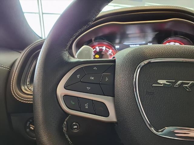 Equipped with Driver Convenience Group (Blind Spot & Cross Path Detection, Body Color Exterior Mirrors, and Exterior Mirrors w/Heating Element), harman/kardon Audio Group w/Subwoofer, Quick Order Package 26K Hellcat Jailbreak, Technology Group, Technology Group (DISC), Challenger SRT Hellcat Jailbreak, 2D Coupe, 6.2L 8-Cylinder SMPI Supercharged OHV, 8-Speed Automatic, RWD, White Knuckle Clearcoat, Black Leather, 1-Yr SiriusXM Guardian Trial, 4-Wheel Disc Brakes, 4G LTE Wi-Fi Hot Spot, 6 Speakers, 8.4 Touchscreen Display, ABS brakes, Adaptive suspension, Air Conditioning, All Radio Equipped Vehicles, All VP4R Radios, Alloy wheels, AM/FM radio: SiriusXM, Anti-whiplash front head restraints, Apple CarPlay, Apple CarPlay/Android Auto, Auto-dimming Rear-View mirror, Automatic temperature control, Black Brake Calipers, Black Exterior Badging, Brake assist, Bumpers: body-color, Compass, Compass Gauge, Delay-off headlights, Driver door bin, Driver vanity mirror, Dual front impact airbags, Dual front side impact airbags, Electronic Stability Control, Emergency communication system: SiriusXM Guardian, For Details, Visit DriveUconnect.com, For More Info, Call 800-643-2112, Four wheel independent suspension, Front anti-roll bar, Front Bucket Seats, Front Center Armrest, Front dual zone A/C, Front License Plate Bracket, Front reading lights, Fully automatic headlights, Garage door transmitter, Google Android Auto, GPS Antenna Input, HD Radio, Heated door mirrors, Heated Front Seats, Heated front seats, Heated Steering Wheel, Heated steering wheel, Illuminated entry, Integrated Center Stack Radio, Integrated Voice Command w/Bluetooth®, Leather Shift Knob, Low tire pressure warning, Manuf Statement of Origin, Media Hub (2 USB, AUX), Outside temperature display, Overhead airbag, Overhead console, Panic alarm, ParkView Rear Back-Up Camera, Passenger door bin, Passenger vanity mirror, Power door mirrors, Power driver seat, Power steering, Power Sunroof, Power Sunroof w/AMM, Power windows, Radio data system, Radio: Uconnect 4C Nav w/8.4 Display, Radio: Uconnect 4C w/8.4 Display, Real Carbon Fiber Interior Accents, Rear anti-roll bar, Rear reading lights, Rear seat center armrest, Rear window defroster, Remote keyless entry, Security system, Shark Fin Antenna, SiriusXM Radio Service, SiriusXM Satellite Radio, Speed control, Speed-sensing steering, Split folding rear seat, Spoiler, Sport steering wheel, SRT Grille Badge, SRT Hellcat Logo Houndstooth Seats, SRT Spoiler Badge, Steering wheel mounted audio controls, Suede Headliner, Tachometer, Telescoping steering wheel, Tilt steering wheel, Traction control, Trip computer, USB Host Flip, Variably intermittent wipers, Wheels: 20 x 9.5 Low Gloss Black Drag, and White LED Leather Steering WheeL.