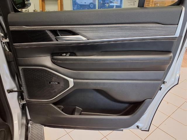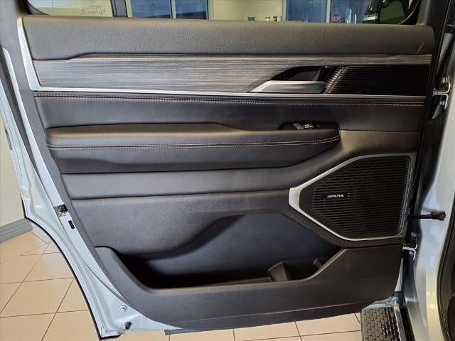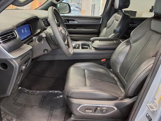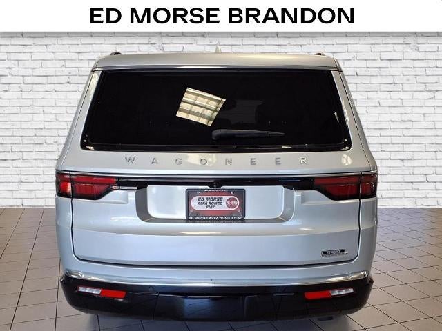 Equipped with Preferred Equipment Group, Quick Order Package 25N, Wagoneer Series III, 4D Sport Utility, 3.0L I6, 8-Speed Automatic, RWD, Silver Zynith, Black Leather, 10 Speakers, 20 x 9.0 Aluminum Wheels, 3.55 Rear Axle Ratio, 3rd row seats: bench, 4-Wheel Disc Brakes, ABS brakes, Adjustable pedals, Air Conditioning, Alloy wheels, AM/FM radio: SiriusXM with 360L, Anti-whiplash front head restraints, Audio memory, Auto High-beam Headlights, Auto-dimming door mirrors, Auto-dimming Rear-View mirror, Auto-leveling suspension, Automatic temperature control, Brake assist, Bumpers: body-color, Compass, Delay-off headlights, Driver door bin, Driver vanity mirror, Driver's Seat Mounted Armrest, Dual front impact airbags, Dual front side impact airbags, Electronic Stability Control, Emergency communication system: Automatic SOS Call, Exterior Parking Camera Rear, Four wheel independent suspension, Front anti-roll bar, Front Bucket Seats, Front Center Armrest w/Storage, Front dual zone A/C, Front fog lights, Front reading lights, Fully automatic headlights, Garage door transmitter, Genuine wood console insert, Genuine wood dashboard insert, Genuine wood door panel insert, Heated door mirrors, Heated front seats, Heated rear seats, Heated steering wheel, Illuminated entry, Knee airbag, Leather Trimmed Bucket Seats, Low tire pressure warning, Memory seat, Navigation System, Normal Duty Suspension, Occupant sensing airbag, Outside temperature display, Overhead airbag, Overhead console, Panic alarm, Passenger door bin, Passenger seat mounted armrest, Passenger vanity mirror, Pedal memory, Power adjustable front head restraints, Power door mirrors, Power driver seat, Power Liftgate, Power passenger seat, Power steering, Power windows, Radio data system, Radio: Uconnect 5 Nav w/10.1 Display, Rain sensing wipers, Rear air conditioning, Rear anti-roll bar, Rear dual zone A/C, Rear reading lights, Rear seat center armrest, Rear window defroster, Rear window wiper, Reclining 3rd row seat, Remote keyless entry, Security system, Speed control, Speed-sensing steering, Speed-Sensitive Wipers, Split folding rear seat, Steering wheel memory, Steering wheel mounted audio controls, Tachometer, Telescoping steering wheel, Tilt steering wheel, Traction control, Trip computer, Turn signal indicator mirrors, Variably intermittent wipers, Ventilated front seats, and Voltmeter.