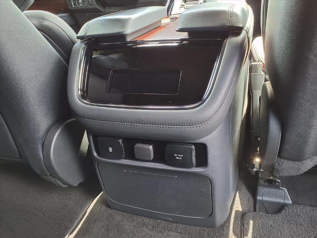Equipped with Equipment Group 200A Reserve, Navigator Reserve, 4D Sport Utility, V6, 10-Speed Automatic, RWD, Black Metallic, Black Onyx Leather, 14 Speakers, 3.73 Axle Ratio, 3rd row seats: split-bench, 4-Wheel Disc Brakes, ABS brakes, Active Park Assist 2.0 Delete, Adaptive suspension, Adjustable pedals, Air Conditioning, Alloy wheels, AM/FM radio: SiriusXM with 360L, Audio memory, Auto High-beam Headlights, Auto Start-Stop Technology, Auto tilt-away steering wheel, Auto-dimming door mirrors, Auto-dimming Rear-View mirror, Auto-leveling suspension, Automatic temperature control, Bodyside moldings, Brake assist, Bumpers: body-color, Compass, Delay-off headlights, Driver door bin, Driver vanity mirror, Driver's Seat Mounted Armrest, Dual front impact airbags, Dual front side impact airbags, Electronic Stability Control, Emergency communication system: 911 Assist, Exterior Parking Camera Rear, Four wheel independent suspension, Front anti-roll bar, Front Bucket Seats, Front dual zone A/C, Front fog lights, Front reading lights, Fully automatic headlights, Garage door transmitter, Genuine wood dashboard insert, Genuine wood door panel insert, Hands-Free Liftgate Delete, Head restraints memory, Heads-Up Display, Heated door mirrors, Heated front seats, Heated rear seats, Heated steering wheel, HVAC memory, Illuminated entry, Leather steering wheel, Low tire pressure warning, Memory seat, Navigation system: Connected Navigation (3-year trial), Occupant sensing airbag, Outside temperature display, Overhead airbag, Overhead console, Panic alarm, Passenger door bin, Passenger seat mounted armrest, Passenger vanity mirror, Pedal memory, Power adjustable rear head restraints, Power door mirrors, Power driver seat, Power Liftgate, Power moonroof: Panoramic Vista Roof, Power passenger seat, Power steering, Power windows, Prem Lthr Auto Htd/Ventiltd Perfect Position Seats, Radio data system, Radio: Revel AM/FM/HD/MP3 Audio System, Rain sensing wipers, Rear air conditioning, Rear anti-roll bar, Rear audio controls, Rear reading lights, Rear window defroster, Rear window wiper, Reclining 3rd row seat, Remote keyless entry, Security system, SiriusXM w/360L, Speed control, Speed-sensing steering, Speed-Sensitive Wipers, Split folding rear seat, Spoiler, Steering wheel memory, Steering wheel mounted audio controls, SYNC 4 Communications & Entertainment System, Tachometer, Telescoping steering wheel, Tilt steering wheel, Traction control, Trip computer, Turn signal indicator mirrors, Variably intermittent wipers, Ventilated front seats, Ventilated rear seats, Voice-Activated Touchscreen Navigation System, and Wheels: 22 Bright Machined Aluminum.