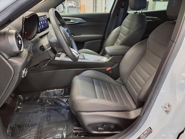 Equipped with Active Assist Package (DISC) (Active Driving Assist System, Auto-Dimming Rear Exterior Mirrors, ParkSense Front/Rear/Side Park Assist, and Surround View Camera System), Premium Interior & Sound Package (Driver Seat Memory, harman/kardon Premium Audio, Perforated Leather Seat, and Ventilated Front Seats), Quick Order Package 28D Ti, Tonale Ti, Alfa Romeo Certified Pre-Owned Certified, 4D Sport Utility, 1.3L I4, 6-Speed Automatic, AWD, Alfa White, Black Leather, 4-Wheel Disc Brakes, 6 Speakers, ABS brakes, Air Conditioning, Alloy wheels, AM/FM radio: SiriusXM, Anti-whiplash front head restraints, Apple CarPlay/Android Auto, Auto High-beam Headlights, Auto-dimming Rear-View mirror, Automatic temperature control, Brake assist, Bumpers: body-color, Compass, Delay-off headlights, Driver door bin, Driver vanity mirror, Dual front impact airbags, Dual front side impact airbags, Electronic Stability Control, Emergency communication system, Four wheel independent suspension, Front anti-roll bar, Front Bucket Seats, Front Center Armrest w/Storage, Front dual zone A/C, Front fog lights, Front reading lights, Fully automatic headlights, Garage door transmitter, Heated door mirrors, Heated front seats, Heated steering wheel, Illuminated entry, Knee airbag, Leather steering wheel, Low tire pressure warning, Navigation System, Occupant sensing airbag, Outside temperature display, Overhead airbag, Overhead console, Panic alarm, ParkView Rear Back-Up Camera, Passenger door bin, Passenger vanity mirror, Power door mirrors, Power driver seat, Power Liftgate, Power Moonroof, Power passenger seat, Power steering, Power windows, Radio: Uconnect 5 Nav w/10.25 Display, Rain sensing wipers, Rear anti-roll bar, Rear seat center armrest, Rear window defroster, Rear window wiper, Remote keyless entry, Security system, Speed control, Split folding rear seat, Spoiler, Sport Cloth Seat w/Biscotto Stitching, Sport steering wheel, Steering wheel mounted audio controls, Tachometer, TBD Axle Ratio, Telescoping steering wheel, Tilt steering wheel, Traction control, Trip computer, Turn signal indicator mirrors, Variably intermittent wipers, Wheels: 18 x 7.5 Black Diamond Cut, and Wheels: 20 x 8.0 Grigio 5-Hole.