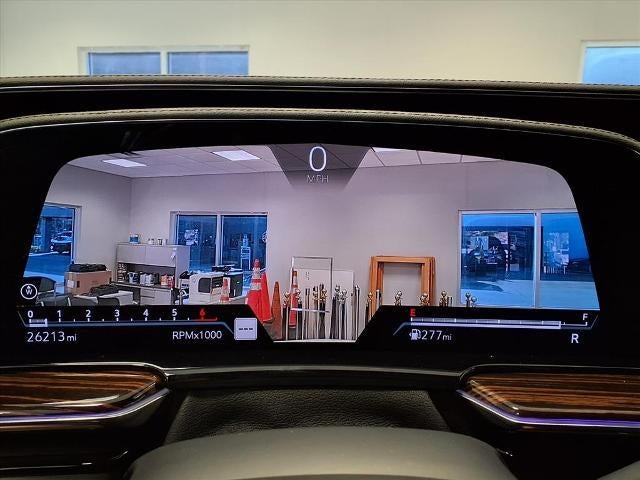 Equipped with Preferred Equipment Group 1SA, Cadillac Certified Pre-Owned Certified, 16.9 Diagonal OLED Infotainment Screen, 19 Speakers, 2-Presets Memory For Driver Seat Adjuster, 3.23 Axle Ratio, 3rd row seats: split-bench, 4-Way Power Driver Lumbar Seat Adjuster, 4-Way Power Front Passenger Lumbar Seat Adjuster, 4-Wheel Disc Brakes, 8-Way Power Driver Seat Adjuster, 8-Way Power Front Passenger Seat Adjuster, ABS brakes, Air Conditioning, Alloy wheels, AM/FM radio: SiriusXM with 360L, Apple CarPlay/Android Auto, Audio memory, Auto High-beam Headlights, Auto tilt-away steering wheel, Auto-dimming door mirrors, Automatic temperature control, Brake assist, Bumpers: body-color, Compass, Delay-off headlights, Driver door bin, Driver vanity mirror, Dual front impact airbags, Dual front side impact airbags, Electronic Stability Control, Emergency communication system: OnStar and Cadillac connected services capable, Exterior Parking Camera Rear, Four wheel independent suspension, Front anti-roll bar, Front Bucket Seats, Front Center Armrest w/Storage, Front dual zone A/C, Front reading lights, Fully automatic headlights, Garage door transmitter, HD Radio, Heated door mirrors, Heated Driver & Front Passenger Seats, Heated front seats, Heated rear seats, Heated steering wheel, Illuminated entry, Inteluxe Seat Trim, Low tire pressure warning, Memory seat, Navigation System, Not Equipped w/2nd Row Express-Up Window Control, Occupant sensing airbag, Outside temperature display, Overhead airbag, Overhead console, Panic alarm, Passenger door bin, Passenger vanity mirror, Power door mirrors, Power driver seat, Power Liftgate, Power passenger seat, Power steering, Power windows, Premium Smooth Ride Suspension, Radio data system, Radio: AM/FM w/Navigation, Rain sensing wipers, Rear air conditioning, Rear anti-roll bar, Rear reading lights, Rear window defroster, Rear window wiper, Remote keyless entry, SiriusXM w/360L, Speed control, Split folding rear seat, Spoiler, Steering wheel memory, Steering wheel mounted audio controls, Tachometer, Teen Driver, Telescoping steering wheel, Tilt steering wheel, Traction control, Trip computer, Turn signal indicator mirrors, Variably intermittent wipers, Voltmeter, Wheels: 22 14-Spoke Alloy w/Bright Silver Finish, and Wireless Apple CarPlay/Wireless Android Auto.