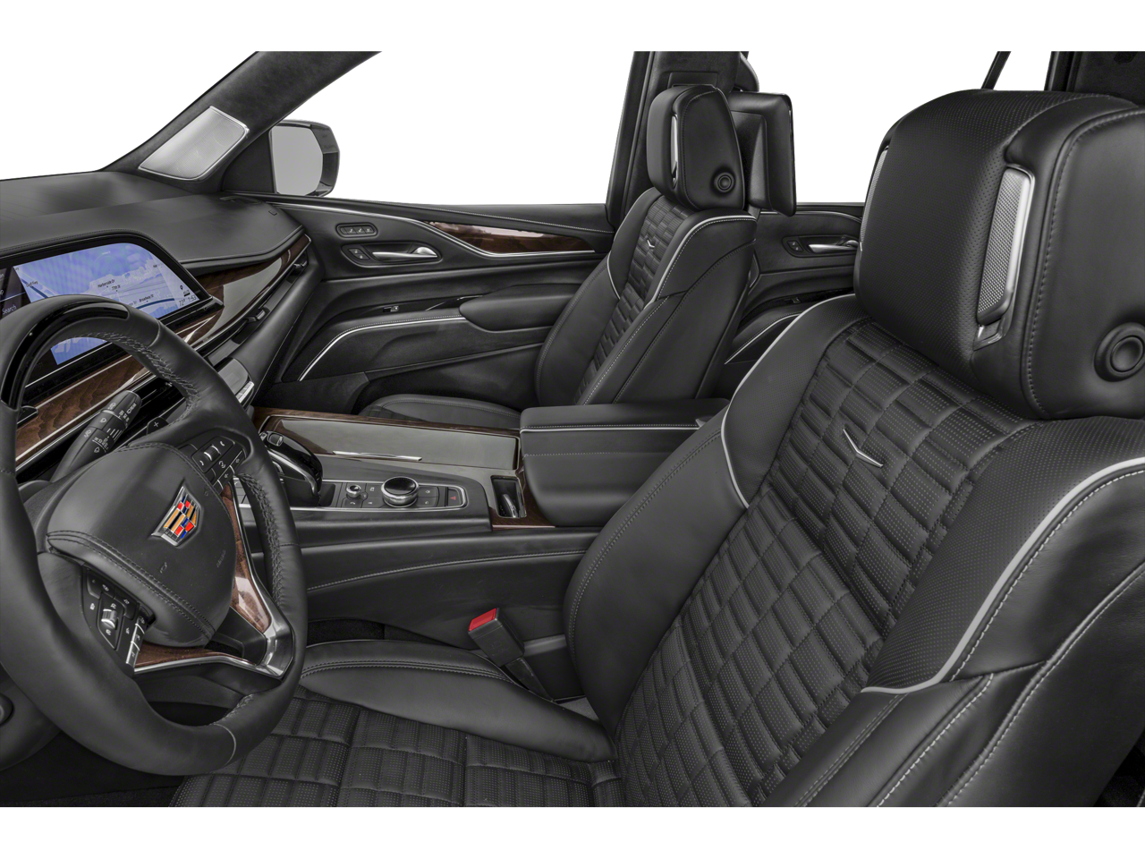 Equipped with Preferred Equipment Group 1SC (Adaptive Cruise Control, AKG Studio 19-Speaker Audio System, Automatic Seat Belt Tightening, Body-Color Door Handles, Door Lock & Latch Shields, Electronic Limited-Slip Differential, Enhanced Automatic Emergency Braking, Enhanced Automatic Parking Assist, Glass Breakage Sensor, Heated & Ventilated Driver & Front Passenger Seats, Hitch Guidance w/Hitch View, Integrated Trailer Brake Controller, Power Panoramic Tilt-Sliding Sunroof, Rear Camera Mirror, Rear Camera Mirror Washer, Rear Cross Traffic Alert, Reconfigurable Full-Color Head-Up Display, Reverse Automatic Braking, Running Board Assist Steps, Smart Trailer Integration Indicator, Theft-Deterrent Alarm System, Trailer Side Blind Zone Alert, Vehicle Inclination Sensor, and Vehicle Interior Movement Sensor), Escalade Sport, Cadillac Certified Pre-Owned Certified, 4D Sport Utility, 6.2L V8, 10-Speed Automatic, AWD, Black Raven, Black Leather, 16.9 Diagonal OLED Infotainment Screen, 19 Speakers, 2-Presets Memory For Driver Seat Adjuster, 3.23 Axle Ratio, 3rd row seats: split-bench, 4-Way Power Driver Lumbar Seat Adjuster, 4-Way Power Front Passenger Lumbar Seat Adjuster, 4-Wheel Disc Brakes, 8-Way Power Driver Seat Adjuster, 8-Way Power Front Passenger Seat Adjuster, ABS brakes, Adaptive suspension, Air Conditioning, Alloy wheels, AM/FM radio: SiriusXM with 360L, Apple CarPlay/Android Auto, Audio memory, Auto High-beam Headlights, Auto tilt-away steering wheel, Auto-dimming door mirrors, Auto-dimming Rear-View mirror, Automatic temperature control, Brake assist, Bumpers: body-color, Compass, Delay-off headlights, Driver door bin, Driver vanity mirror, Dual front impact airbags, Dual front side impact airbags, Electronic Stability Control, Emergency communication system: OnStar and Cadillac connected services capable, Exterior Parking Camera Rear, Four wheel independent suspension, Front anti-roll bar, Front Bucket Seats, Front Center Armrest w/Storage, Front dual zone A/C, Front License Plate Bracket, Front reading lights, Fully automatic headlights, Garage door transmitter, HD Radio, Heads-Up Display, Heated door mirrors, Heated Driver & Front Passenger Seats, Heated front seats, Heated rear seats, Heated steering wheel, Illuminated entry, Leather Seating Surfaces w/Precision Perf Inserts, Low tire pressure warning, Magnetic Ride Control Suspension, Memory seat, Navigation System, Occupant sensing airbag, Outside temperature display, Overhead airbag, Overhead console, Panic alarm, Passenger door bin, Passenger vanity mirror, Power door mirrors, Power driver seat, Power Liftgate, Power moonroof, Power passenger seat, Power steering, Power windows, Radio data system, Radio: AM/FM w/Navigation, Rain sensing wipers, Rear air conditioning, Rear anti-roll bar, Rear reading lights, Rear window defroster, Rear window wiper, Remote keyless entry, Security system, SiriusXM w/360L, Speed control, Split folding rear seat, Spoiler, Steering wheel memory, Steering wheel mounted audio controls, Tachometer, Teen Driver, Telescoping steering wheel, Tilt steering wheel, Traction control, Trip computer, Turn signal indicator mirrors, Variably intermittent wipers, Ventilated front