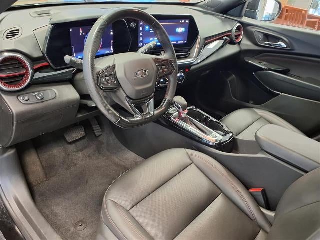 Car and Driver, January 2017. Equipped with Driver Confidence Package (Adaptive Cruise Control, Lane Change Alert w/Side Blind Zone Alert, and Rear Cross-Traffic Alert), Preferred Equipment Group 2RS, Sunroof Package (Power Sliding Glass Sunroof w/Manual Shade and Wireless Charging), Trax 2RS, 4D Sport Utility, 1.2L Ecotec Turbo DOHC DI w/VVT, 6-Speed Automatic, FWD, Mosaic Black Metallic, Jet Black w/Red Accents w/Evotex Seat Trim, 2-Way Adjustable Front Head Restraints, 3.50 Final Drive Axle Ratio, 4-Way Manual Front Passenger Seat Adjuster, 4-Wheel Disc Brakes, 6 Speakers, 6-Speaker Audio System Feature, 6-Way Manual Driver Seat Adjuster, ABS brakes, Air Conditioning, Alloy wheels, AM/FM radio: SiriusXM, Auto High-beam Headlights, Automatic temperature control, Brake assist, Bumpers: body-color, Compass, Delay-off headlights, Driver door bin, Driver vanity mirror, Dual front impact airbags, Dual front side impact airbags, Electronic Stability Control, Emergency communication system: OnStar and Chevrolet connected services capable, Evotex Seat Trim, Exterior Parking Camera Rear, Front anti-roll bar, Front Bucket Seats, Front Center Armrest, Front reading lights, Front wheel independent suspension, Fully automatic headlights, Heated door mirrors, Heated Driver & Front Passenger Seats, Heated front seats, Heated steering wheel, Illuminated entry, Low tire pressure warning, Occupant sensing airbag, Outside temperature display, Overhead airbag, Overhead console, Panic alarm, Passenger door bin, Passenger vanity mirror, Power door mirrors, Power steering, Power windows, Premium audio system: Chevrolet Infotainment 3, Radio data system, Radio: Audio System w/AM/FM, Rear Park Assist (DISC), Rear window defroster, Rear window wiper, Remote keyless entry, Security system, SiriusXM, Speed control, Split folding rear seat, Spoiler, Sport steering wheel, Steering wheel mounted audio controls, Tachometer, Telescoping steering wheel, Tilt steering wheel, Traction control, Trip computer, Variably intermittent wipers, and Wheels: 19 Black-Painted Machined Aluminum.