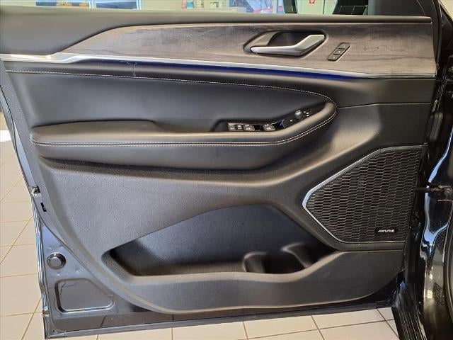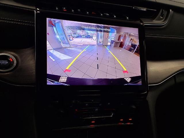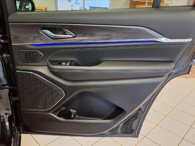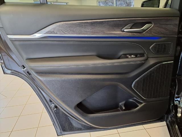 Equipped with Grand Cherokee L Overland, 4D Sport Utility, HEMI 5.7L V8 Multi Displacement VVT, 8-Speed Automatic, 4WD, Diamond Black Crystal Pearlcoat, Global Black w/Nappa Leather Seats or Palermo Leather Seats, 10 Speakers, 3.45 Rear Axle Ratio, 3rd row seats: split-bench, 4-Wheel Disc Brakes, ABS brakes, Active Noise Control System, Adaptive suspension, Air Conditioning, Alloy wheels, AM/FM radio: SiriusXM with 360L, Anti-whiplash front head restraints, Audio memory, Auto High-beam Headlights, Auto-dimming door mirrors, Auto-dimming Rear-View mirror, Auto-leveling suspension, Automatic temperature control, Brake assist, Bumpers: body-color, Compass, Delay-off headlights, Driver door bin, Driver vanity mirror, Dual front impact airbags, Dual front side impact airbags, Electronic Stability Control, Emergency communication system, Four wheel independent suspension, Front anti-roll bar, Front Bucket Seats, Front Center Armrest w/Storage, Front dual zone A/C, Front fog lights, Front reading lights, Fully automatic headlights, Garage door transmitter, Heated door mirrors, Heated front seats, Heated rear seats, Heated steering wheel, Illuminated entry, Knee airbag, Low tire pressure warning, Memory seat, Nappa Leather Seats, Navigation System, Normal Duty Suspension, Occupant sensing airbag, Outside temperature display, Overhead airbag, Overhead console, Panic alarm, Passenger door bin, Passenger vanity mirror, Power door mirrors, Power driver seat, Power Fold Seatbacks, Power Liftgate, Power moonroof, Power passenger seat, Power steering, Power windows, Radio data system, Radio: Uconnect 5 Nav w/10.1 Display, Rain sensing wipers, Rear air conditioning, Rear anti-roll bar, Rear reading lights, Rear window defroster, Rear window wiper, Reclining 3rd row seat, Remote keyless entry, Security system, Speed control, Speed-Sensitive Wipers, Split folding rear seat, Spoiler, Steering wheel memory, Steering wheel mounted audio controls, Tachometer, Telescoping steering wheel, Tilt steering wheel, Traction control, Trip computer, Turn signal indicator mirrors, Variably intermittent wipers, Ventilated front seats, Voltmeter, and Wheels: 20 x 8.5 Machined Face Aluminum.