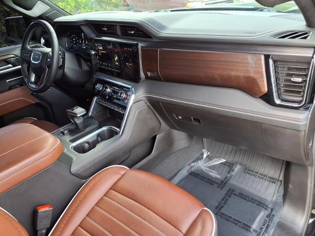 Equipped with Preferred Equipment Group 5SB (120-Volt Bed Mounted Power Outlet, 120-Volt Interior Power Outlet, 2 Charge/Data USB Ports Inside Center Console, 2 Type-C Charge-Only Rear USB Ports, 2 USB Ports, Auto-Locking Rear Differential, Bed View Camera, Bose Premium Series w/12-Speaker System, Chrome Recovery Hooks, Color-Keyed Carpeting Floor Covering, Deep-Tinted Glass, Electric Rear-Window Defogger, Floor-Mounted Center Console, Front Rain-Sensing Wipers, HD Surround Vision, Heated 2nd Row Outboard Seats, Heated Driver & Front Outboard Passenger Seating, Heavy-Duty Air Filter, High Gloss Black Header w/Signature Denali Grille, Hill Descent Control, Hitch View, In-Vehicle Trailering System App, Integrated Trailer Brake Controller, Keyless Open & Start, LED Cargo Area Lighting, Multicolor 15 Diagonal Head-Up Display, MultiPro Tailgate Audio System by Kicker (LPO), OnStar Services Capable, Perimeter Lighting, Power Door Locks, Power Front Passenger Windows w/Express Up/Down, Power Front Windows w/Driver Express Up/Down, Power Rake & Telescoping Steering Column, Power Rear Windows w/Express Down, Power Sliding Rear Window w/Rear Defogger, Power Sunroof, Push Button Start, Rear Cross Traffic Braking, Rear Pedestrian Detection, Rear Wheelhouse Liners, Remote Vehicle Starter System, SiriusXM w/360L Trial Subscription, Spray-On Pickup Bedliner w/GMC Logo, Steering Wheel Audio Controls, Theft Deterrent System (Unauthorized Entry), Trailer Camera Provisions, Trailer Side Blind Zone Alert, Trailer Tire Pressure Monitor System, Ultrasonic Front & Rear Park Assist, Universal Home Remote, Ventilated Driver & Front Passenger Seats, Wi-Fi Hotspot Capable, and Wireless Charging), Trailering Package (Hitch Guidance), Sierra 1500 Denali Ultimate, 4D Crew Cab, EcoTec3 6.2L V8, 10-Speed Automatic, 4WD, Onyx Black, Alpine Umber Leather, 12 Speakers, 16-Way Power Driver Seat Adjuster w/Lumbar, 16-Way Power Passenger Seat Adjuster w/Lumbar, 170 Amp Alternator, 3.23 Rear Axle Ratio, 4-Wheel Disc Brakes, ABS brakes, Adaptive suspension, Air Conditioning, Alloy wheels, AM/FM radio: SiriusXM with 360L, Apple CarPlay/Android Auto, Auto High-beam Headlights, Auto-dimming door mirrors, Auto-dimming Rear-View mirror, Automatic temperature control, Body Color Wheel Arch Moldings (LPO), Brake assist, Buckle to Drive, Bumpers: body-color, Carbon Fiber Composite Bed, Compass, Delay-off headlights, Denali Premium Suspension w/Adaptive Ride Control, Driver door bin, Driver Memory, Driver vanity mirror, Dual Active Exhaust, Dual front impact airbags, Dual front side impact airbags, Electronic Stability Control, Emergency communication system: OnStar, Enhanced Automatic Emergency Braking, Following Distance Indicator, Forward Collision Alert, Front anti-roll bar, Front Bucket Seats, Front Center Armrest, Front dual zone A/C, Front fog lights, Front License Plate Kit, Front Pedestrian Braking, Front reading lights, Front wheel independent suspension, Full Grain Leather Seat Trim, Fully automatic headlights, Garage door transmitter, Genuine wood console insert, Genuine wood dashboard insert, Genuine wood door panel insert, Heads-Up Display, Heated door mirrors, Heated front seats, Heated rear seats, Heated steering wheel, Illuminated entry, IntelliBeam Automatic High Beam On/Off, Low tire pressure warning, Memory seat, Navigation System, Occupant sensing airbag, Outside temperature display, Overhead airbag, Overhead console, Panic alarm, Passenger door bin, Passenger vanity mirror, Power door mirrors, Power driver seat, Power moonroof, Power passenger seat, Power steering, Power windows, Radio data system, Radio: Premium GMC Infotainment Audio System, Rain sensing wipers, Rear reading lights, Rear seat center armrest, Rear